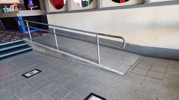 Removal and replacement of new concrete ADA ramp with railings.