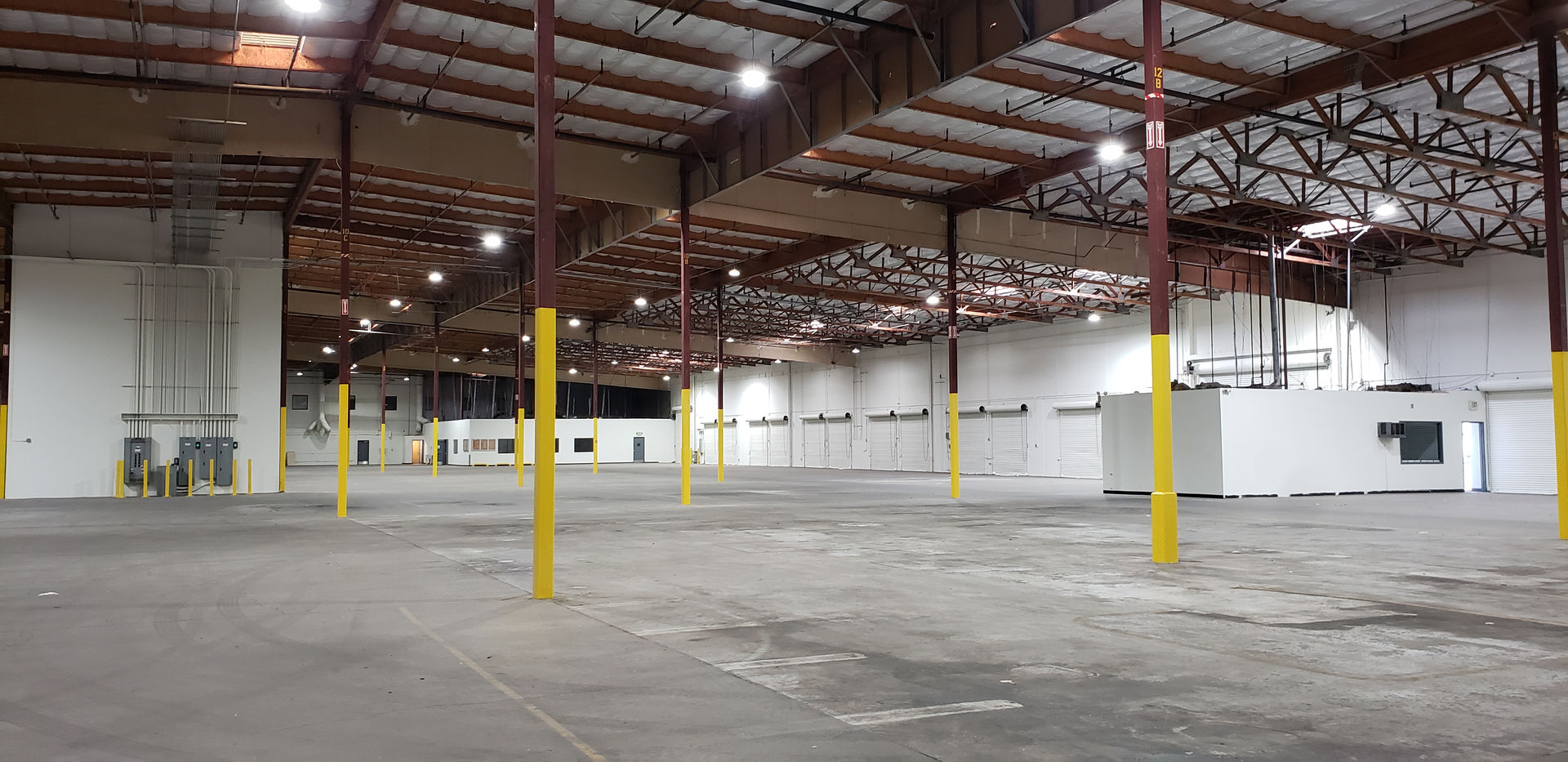 Complete office and warehouse remodel of an existing 161,994 square foot building in Sacramento, California. This “white box” look remodel that included white high bay UFO style LED lighting, new roof deck batt insulation with white scrim cap, and complete painting of the interior warehouse space.