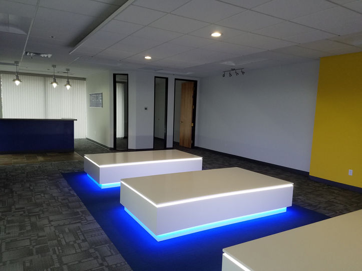 Our team created this design build project with Westcore Properties, starting with a complete gutting and demolition of existing office space. The new construction included a new suspended cloud system and custom display units, along with a complete interior build out and finishes.